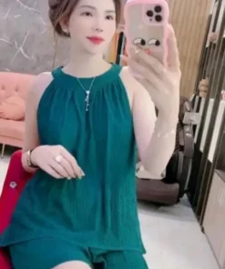Đồ bộ quần đùi không túi xốp Nhật cổ yếm nữ size 40 - 65kg